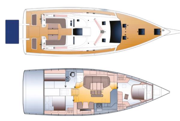 „Draußen zeigen sich dieselben Vorteile: Das flächenbündige Deck mit Seitendecks auf derselben Ebene wie das Cockpit ermöglicht eine reibungslose Bewegung. Die 40 cm hohe Reling, gekrönt von einer 30 cm hohen Reling, bietet zusätzliche Sicherheit. Das Heck bleibt geschlossen, mit einladenden Sitzen hinter den beiden Steuerständen. Das ist ein komfortabler Bereich für die Wache bei gutem Wetter. Bei schlechterem Wetter wird die Wache unter der starren Sprayhood und dem Hardtop geführt, auf einem speziellen Sitz, geschützt vor den Elementen, mit Blick auf die Instrumente. Seemännisch einfach super gelöst, auch für die Fahrt in rauere Regionen!“