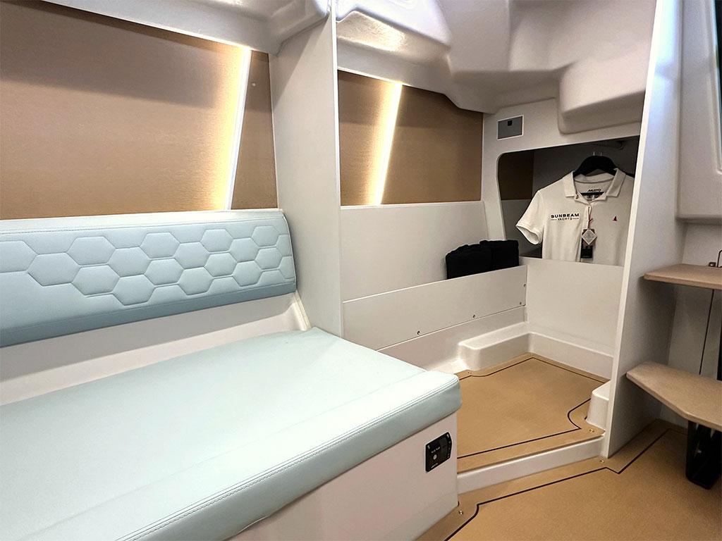 Beim Interieur hat sich die Werft die Dienste der renommierten österreichischen Innenraumdesignerin Barbara Gollackner in Anspruch genommen. Gemeinsam mit der Salzbugerin wurde die SUNBEAM 29.1 nicht nur besonders modern und fast schon luxuriös, sondern vor allem sehr komfortable und modular eingerichtet. Eigner können das Boot optional mit einem Pantry- und/oder WC-Raum ausstatten. Der Clou hieran ist, dass diese Module auch nachgerüstet werden können, sich die Yacht also Ihren verändernden Ansprüchen und Bedürfnissen anpassen kann. Sie ist weit mehr, als ein reiner Daysailer. Ein schicker, kompakter Allrounder für Könner und Familien gleichermaßen.
